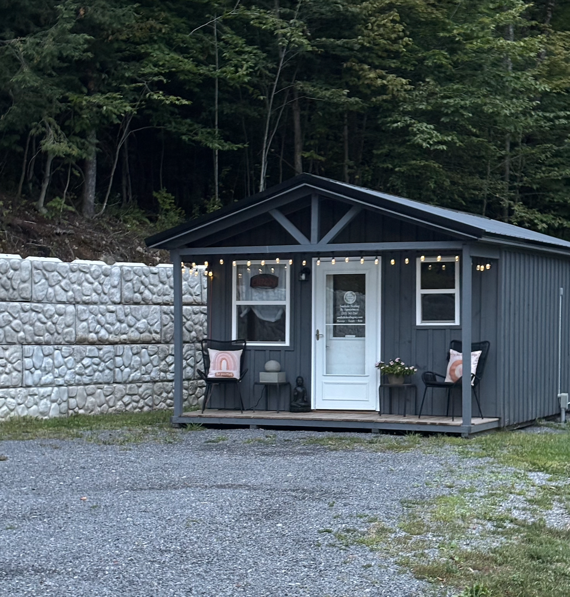 Slightly off the beaten path and tucked nearly 1,000 feet into the lush New York woods, our home-based, stand-alone studio offers an immediate sense of peace. This small cabin, full of rustic charm and golden light, serves as a warm and welcoming sanctuary designed for deep restoration. Surrounded by the quiet rhythms of the trees, it is the perfect space to slow down, breathe, and experience the transformative power of our Perfect Fusions.